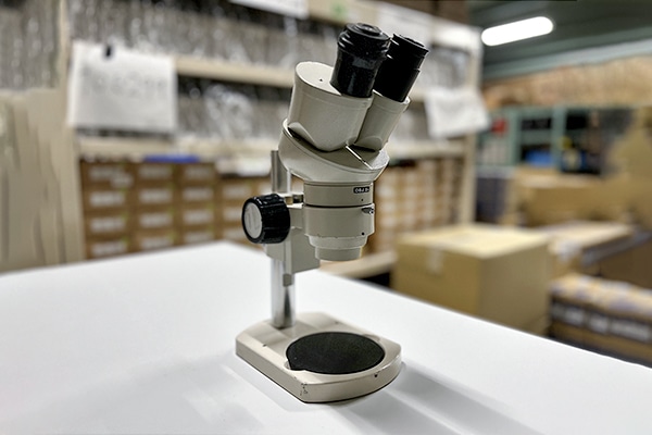 実体顕微鏡。全部で4台あり、種類がそれぞれ少し異なります。対物レンズの倍率はどれも2倍ですが、接眼レンズの倍率がそれぞれ異なります。