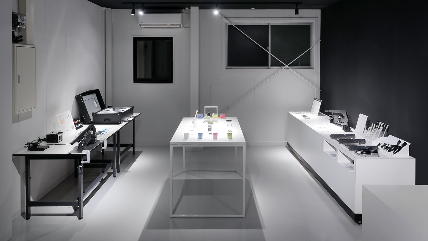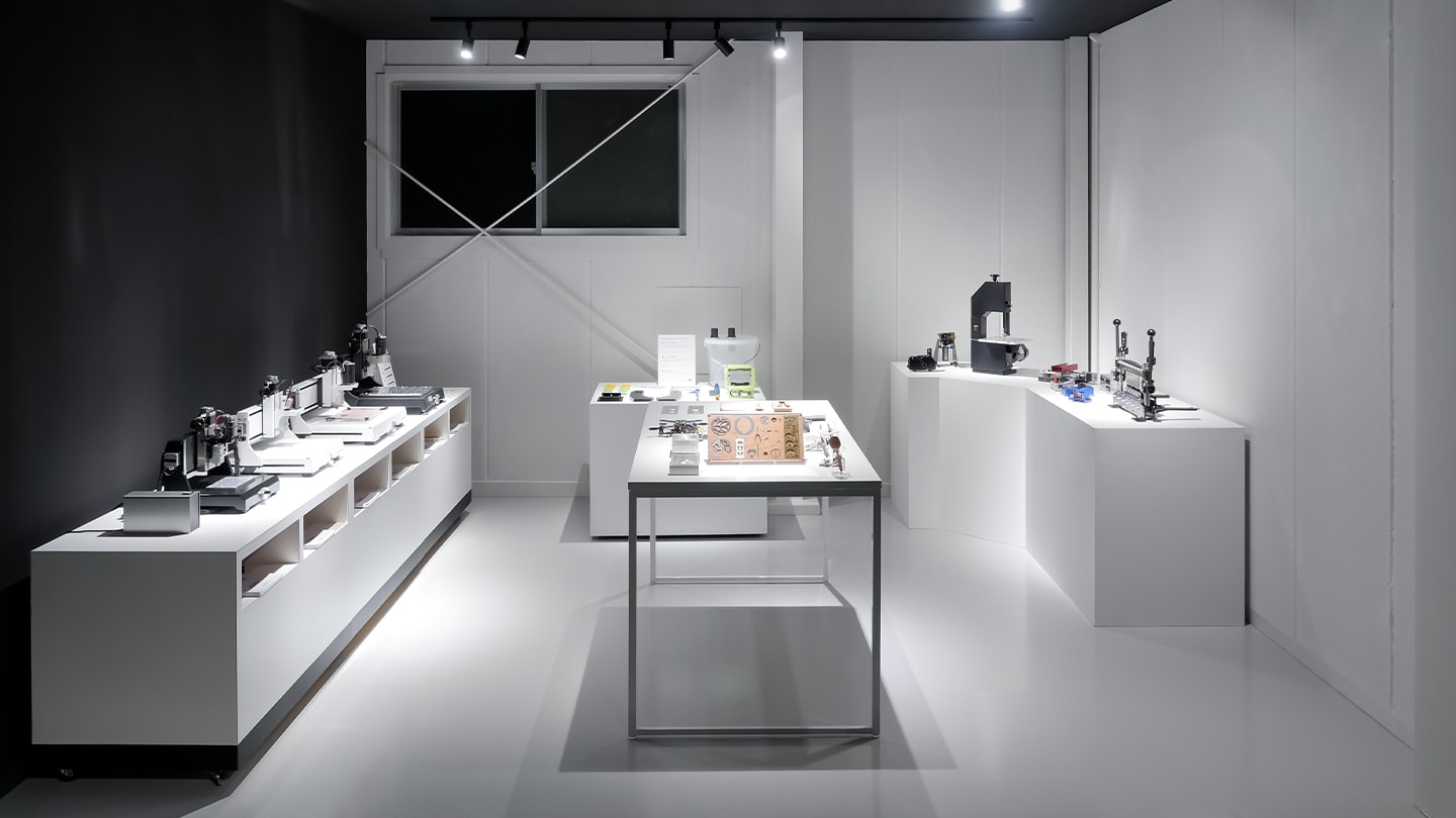 こうしたニーズに応えるため、当社は新たにショールームを開設しました。このショールームでは、卓上射出成形機「INARI」シリーズだけでなく、主力製品である卓上CNCフライス「KitMill」シリーズや板金加工機「MAGEMAGE」など、当社のすべてのオリジナル製品をご覧いただけます。