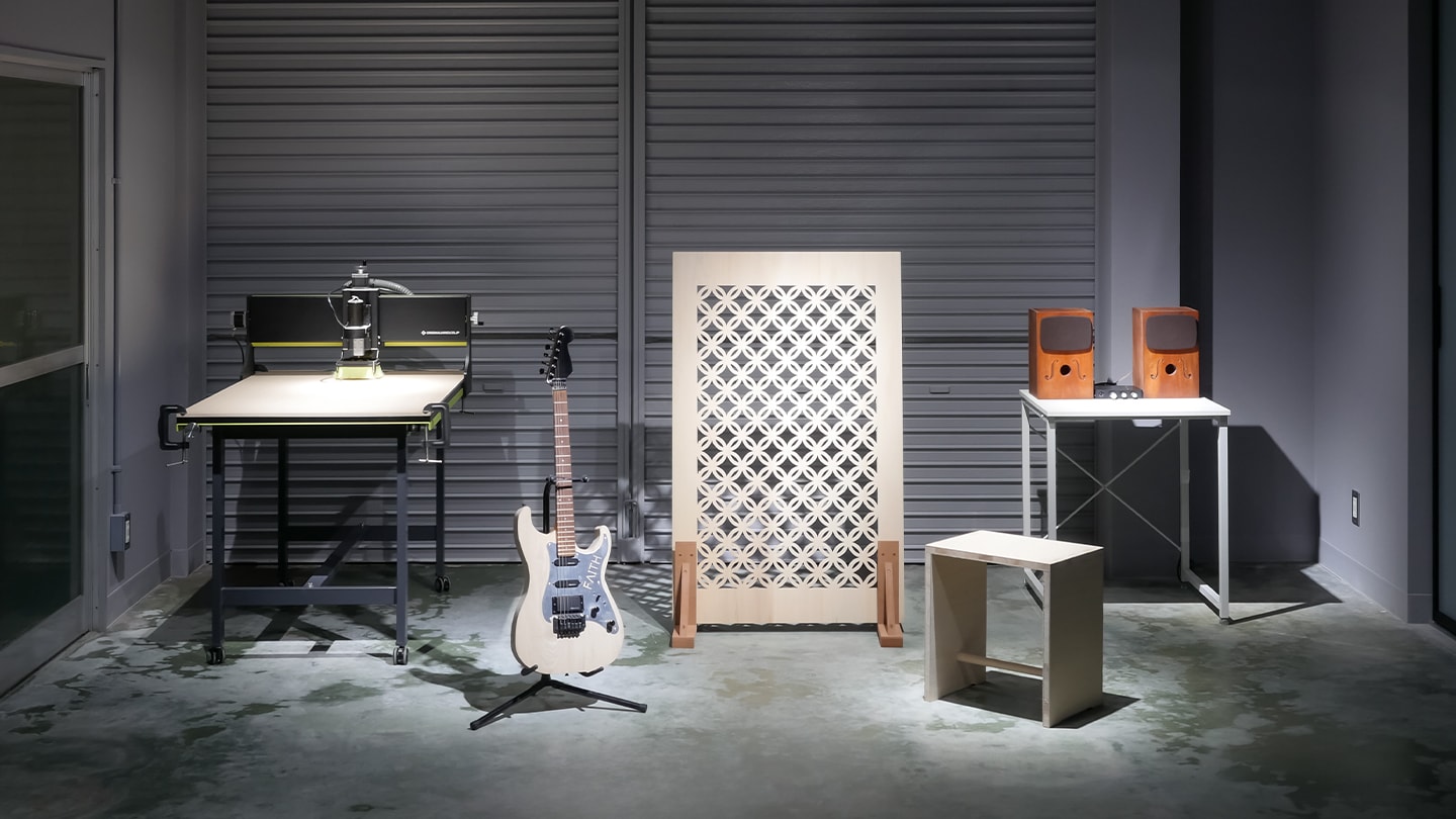 Dのエリアでは、木材加工専用に開発されたテーブル型のCNCフライス「KitMill MOC900」とその加工サンプルを展示します。