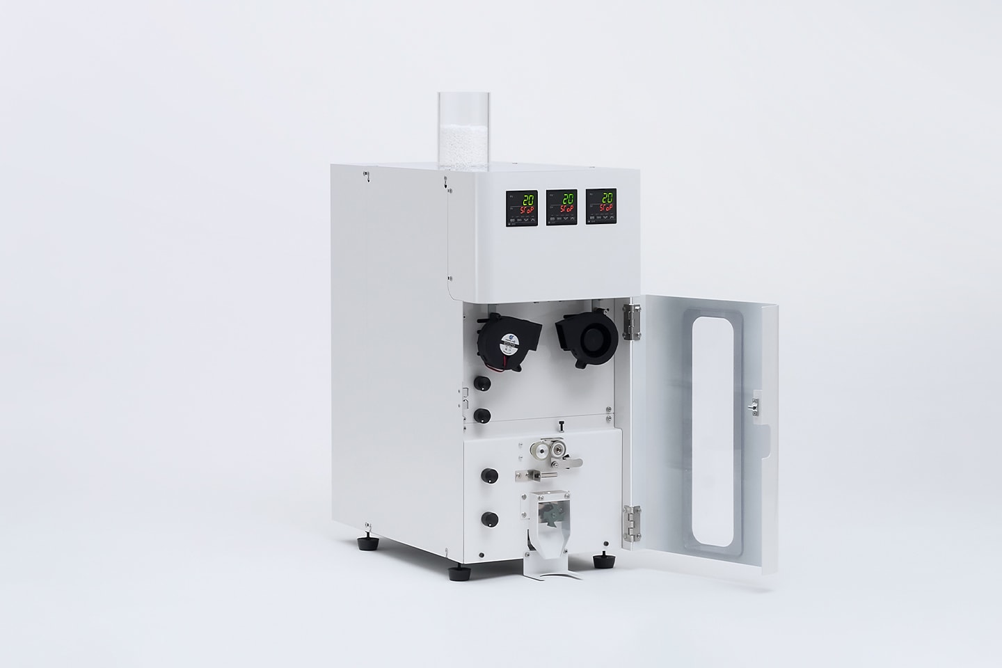 「卓上で極める射出成形」をコンセプトに、私たちは卓上サイズの射出成形機「INARI」シリーズを展開してきました。「INARI」は、プレスシャフトで材料を押し出すシンプルな構造で、小型化と手軽さを実現し、試作や開発シーンで幅広く活躍しています。しかし「INARI」は、一般的な射出成形機に搭載されるスクリューが無いため、着色やフィラーの配合といった材料の調製ができませんでした。