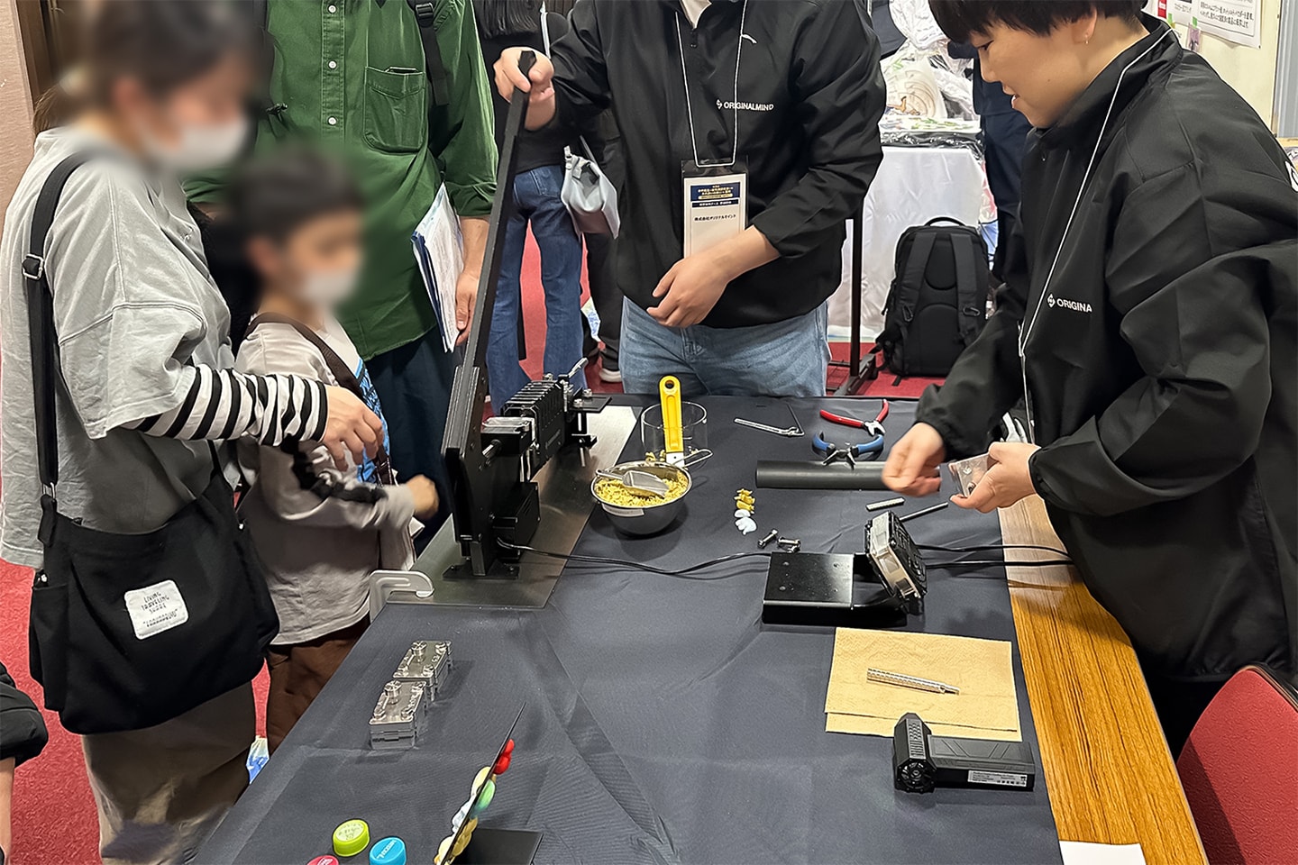オリジナルマインドは、北信会場のアクティホールにて「廃プラスチック再生体験ワークショップ」を実施しました。このワークショップでは、手動射出成形機「INARI M06」を使って、廃プラスチックをリサイクルしてどうぶつマグネットへと生まれ変わらせる体験をしていただきました。