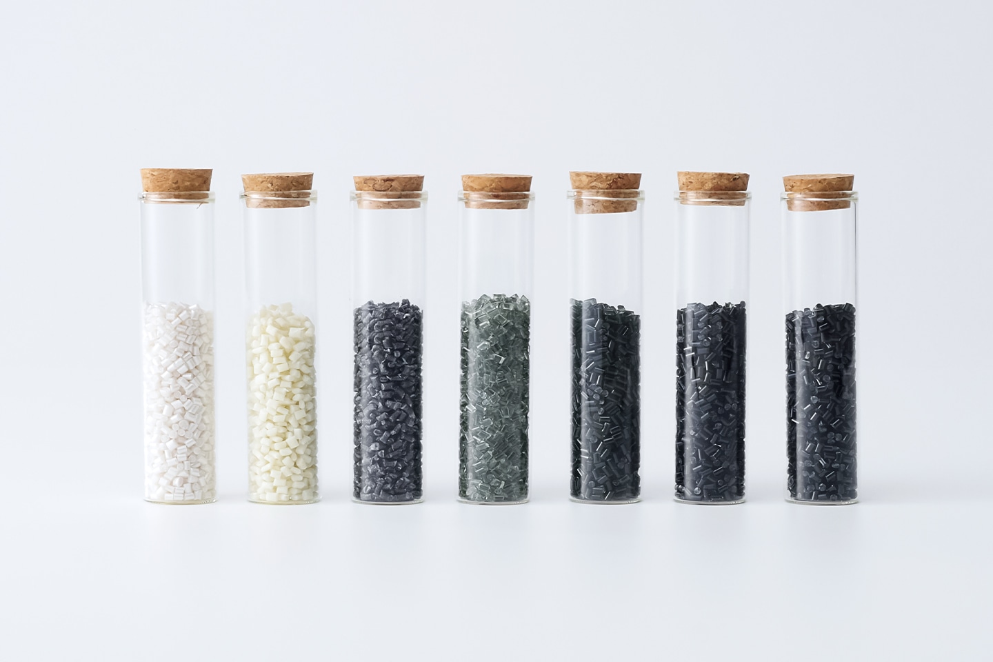 マイカ(雲母)は光を反射する性質があり、プラスチックに混ぜることでパールのような外観を引き出せます。なお、使用した合成マイカの粒径は 5 ~ 60μm ほどです。