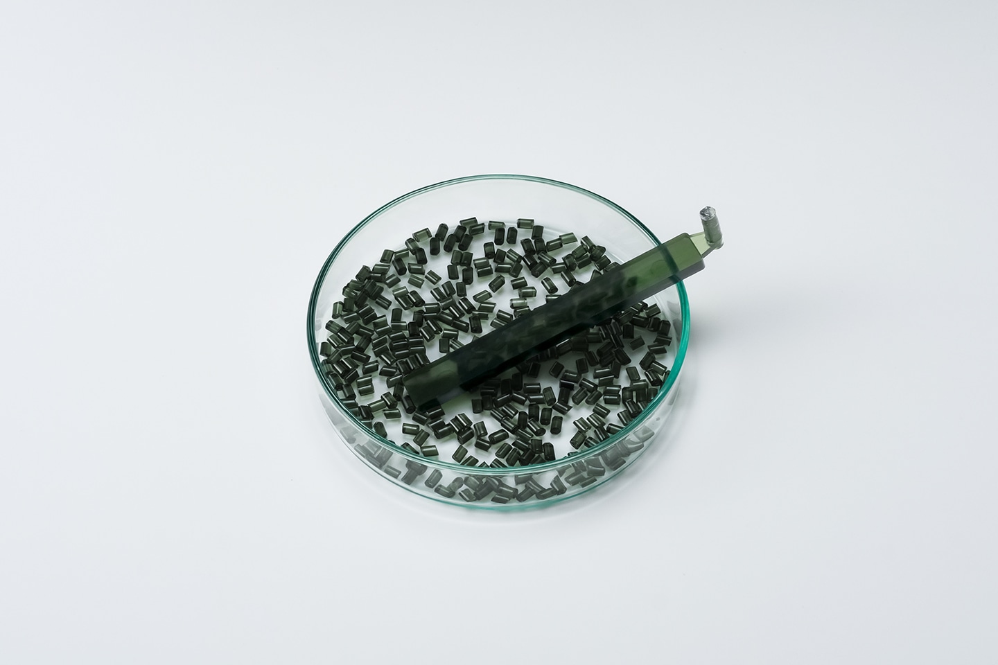 ABS の成形性と PC の耐熱性や機械剛性、さらにガラス繊維による補強が加わるため、バランスの良い高性能樹脂になります。ガラス繊維の配合量が多くなるとストランドの表面が荒くなり、安定してペレタイズができない場合があるため注意が必要です。