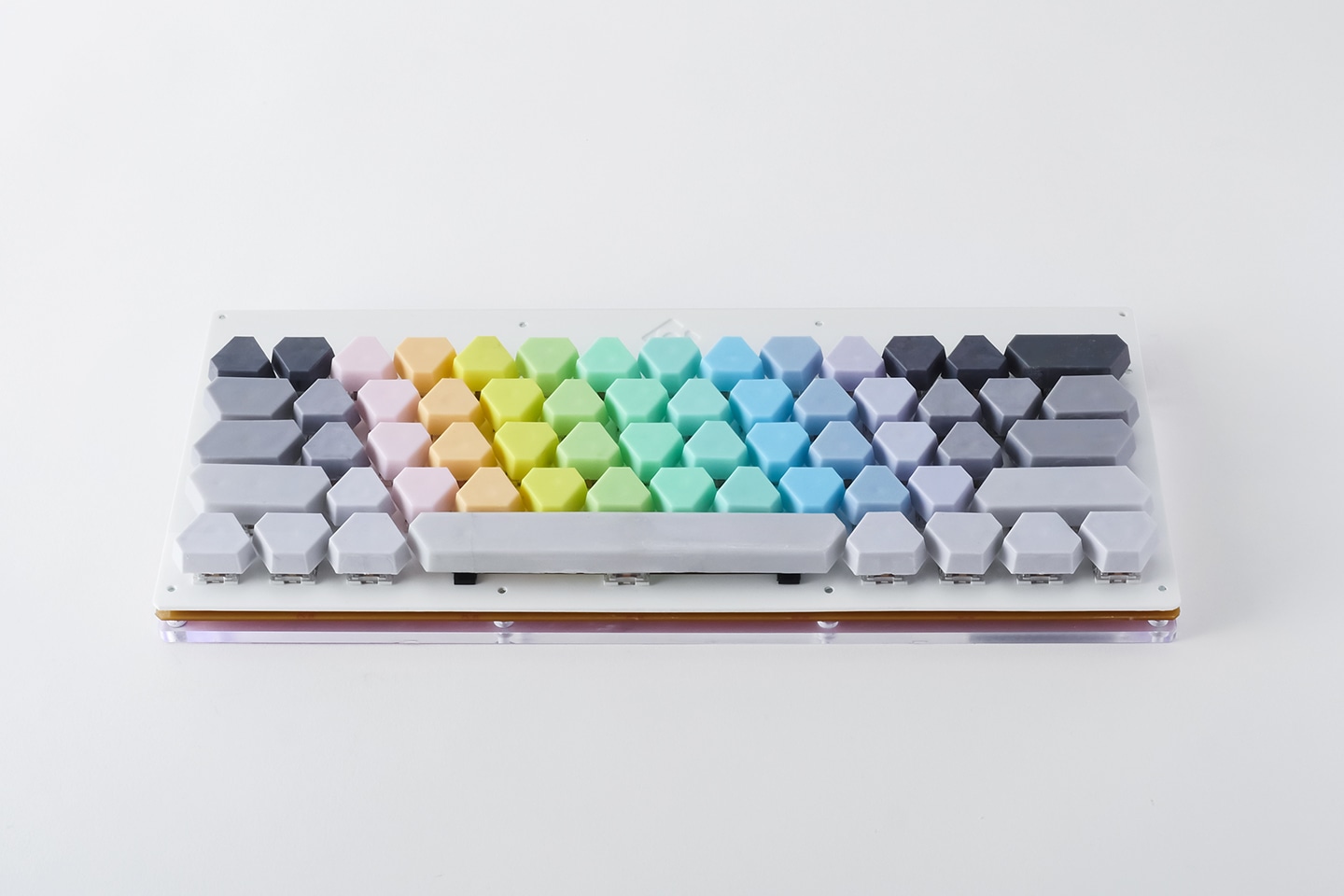 「CONERI」で調色したペレットを使用して、「INARI」でキーキャップを射出成形しました。ボードの削り出しと基板は「KitMill」で加工しました。
