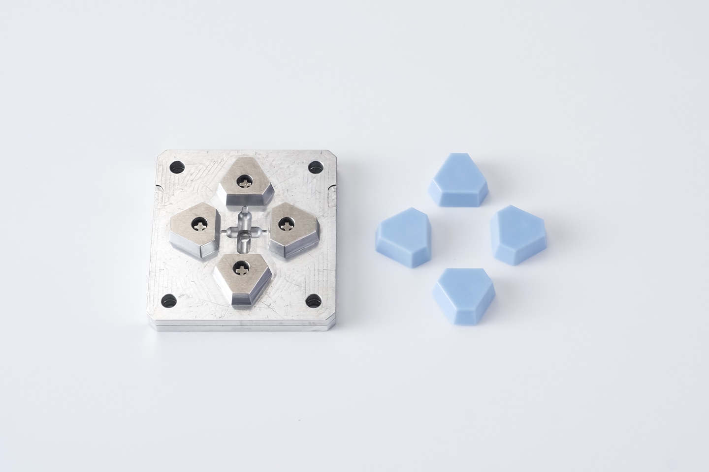 小さなアルファベットキーや修飾キーなどは「手動式 INARI M06」で成形し、スペースキーやエンターキーなどの大きなキーは、「空圧式 INARI P35」で成形しました。「INARI」シリーズは、空圧式と手動式ともに材料の切り替えがしやすいシンプルな構造です。そのため様々な色や種類の樹脂も、手軽に試作を繰り返すことができます。