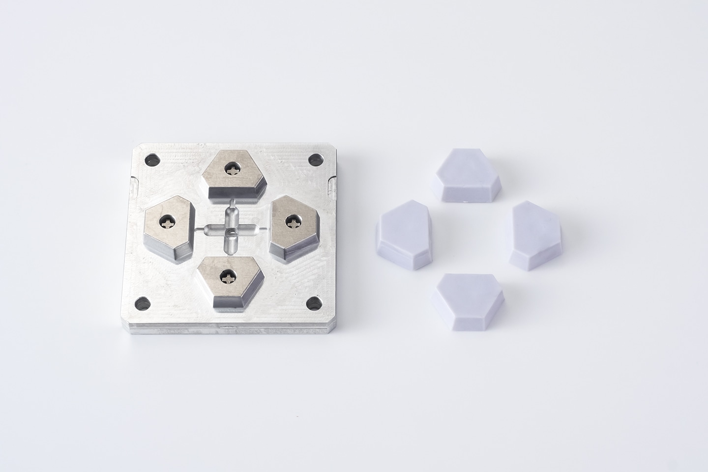 JIS K7139 にもとづいたタイプ B1、厚さ 4mm の 短冊試験片 です。成形容量 3.2 cc と、材料の大量調達が難しい試作用の材料でも成形が可能です。金型は KitMill AST200 で製作しました。