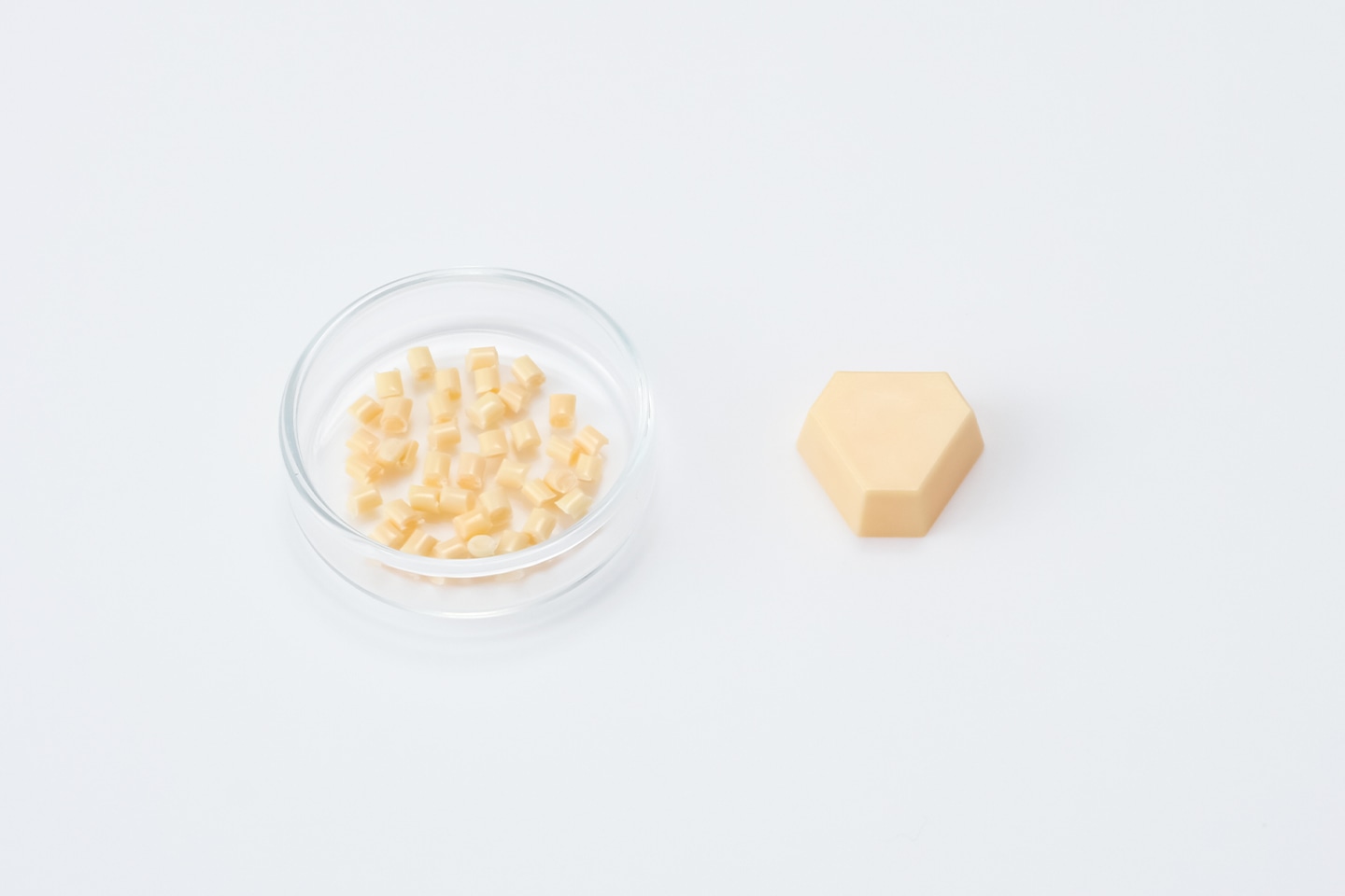 そこで、射出成形のプロセスを卓上に凝縮。材料となる樹脂ペレットを造粒し、型を削り出し、 射出成形によってカタチにする―。卓上サイズの工作機械たちが連携することで、研究室やオフィスの小さなスペースでも、その日のうちに試作が完結します。