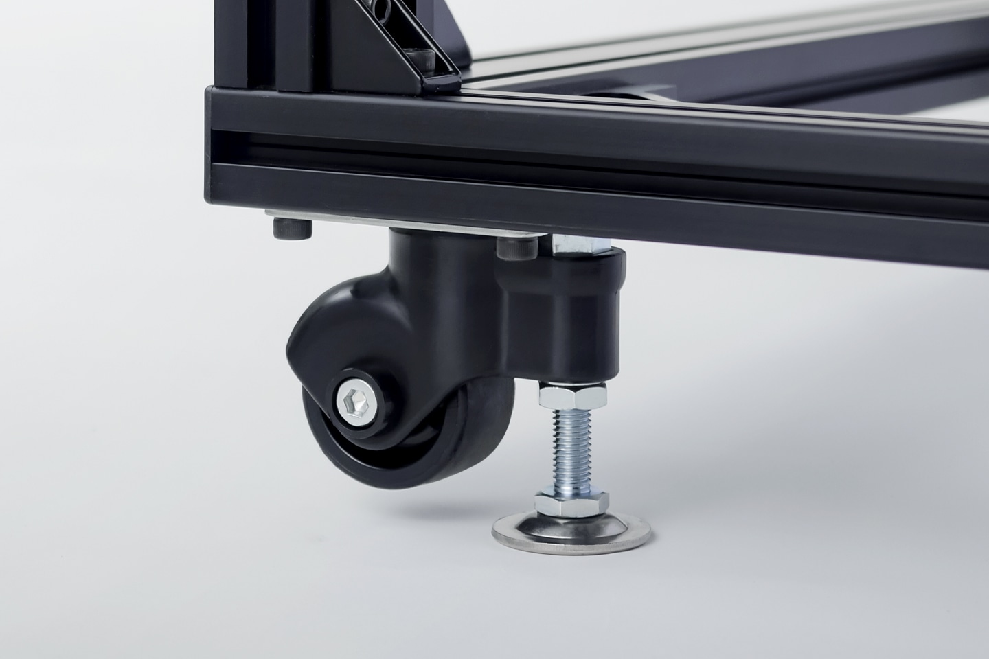 「据置タイプ|KitMill RZ300/420、AST200」はアジャスターを完備。設置面の凹凸に対し、機械を水平に保つことで安定した加工を実現する。