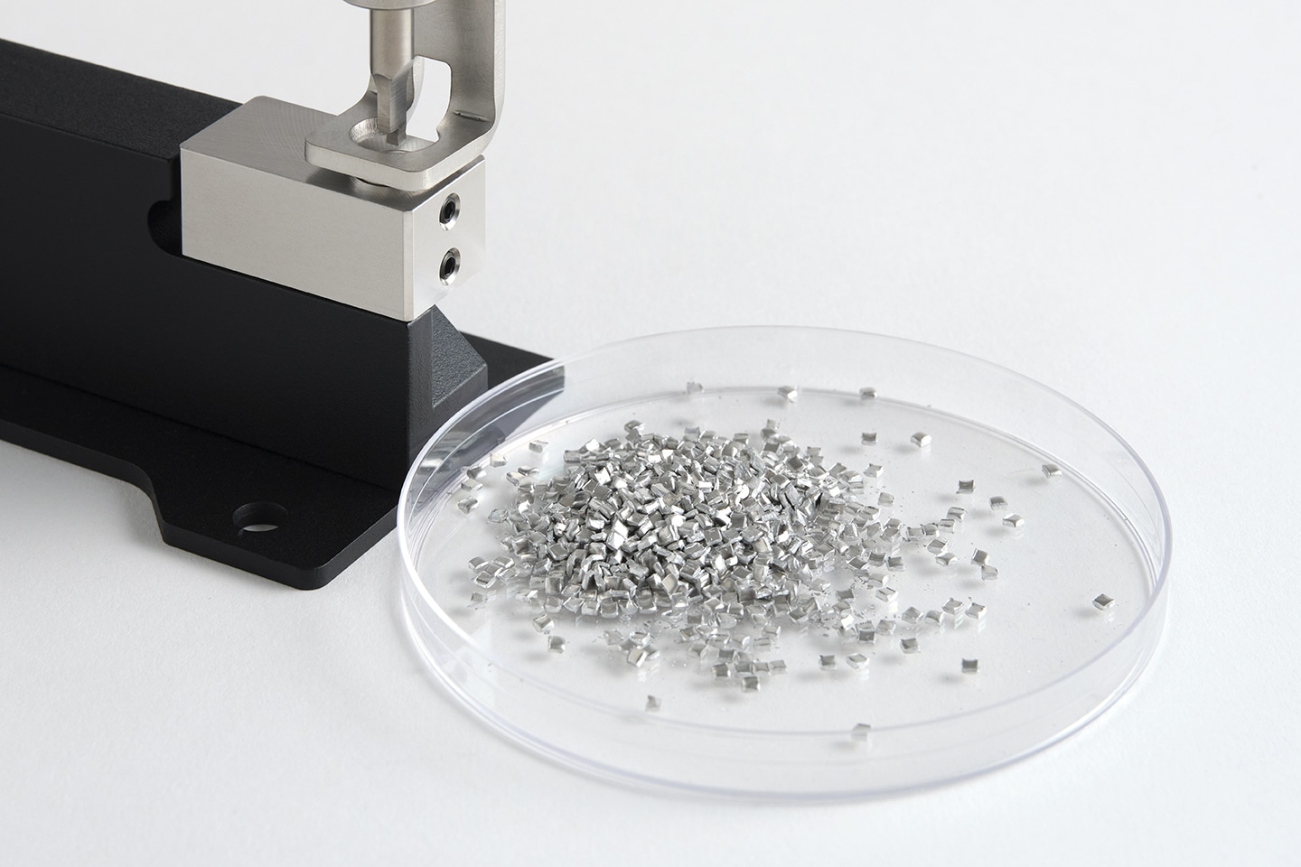 打ち抜き加工で発生する切断片は、ダイの下方向へ自然に排出され、一か所に集まる設計となっています。切断片は容器にまとめて回収でき、処理も簡単です。作業を中断することなく、つくることに集中できる環境を保ちます。