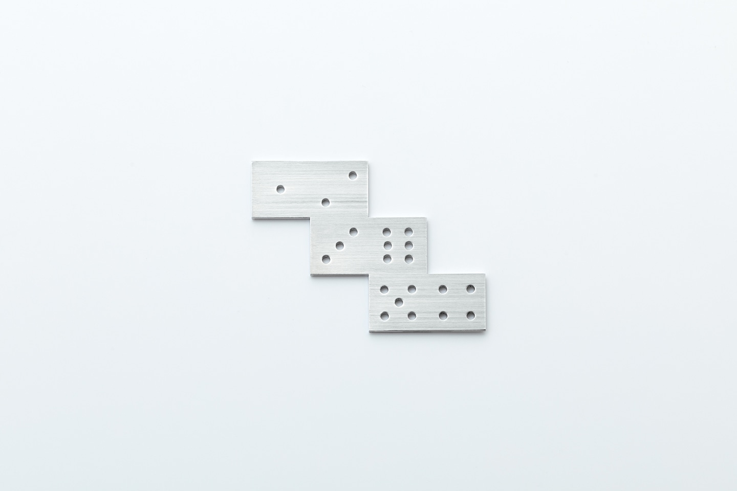 オプション品の「Φ2.5mm 丸穴用パンチ&ダイ」を使用して、折りたたむとサイコロになるようアルミ板を加工しました。