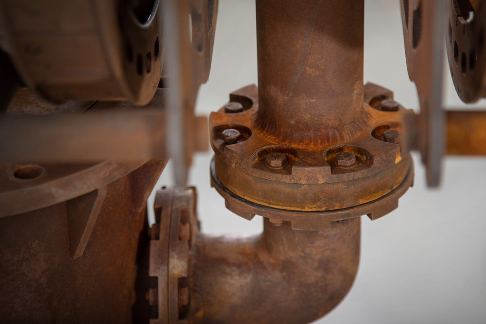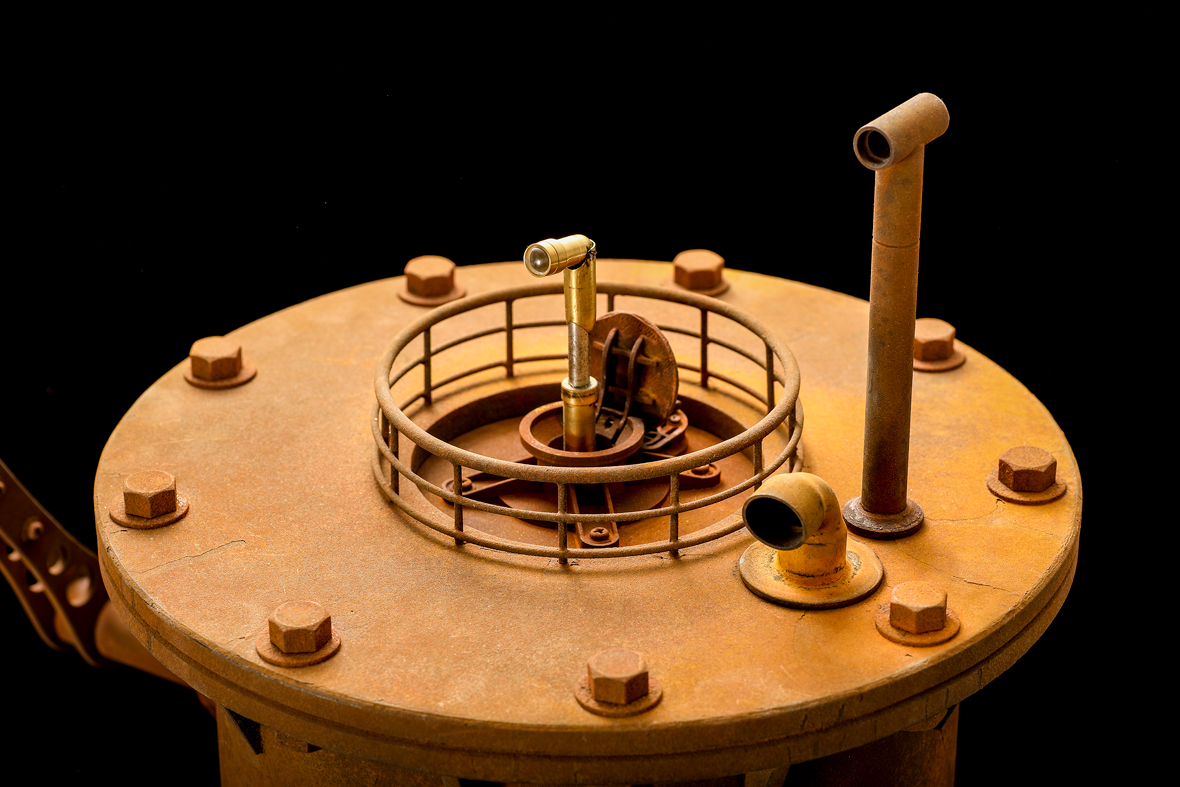 塩ビ管やMDFなどの非金属で作られた外装にエイジング塗装を施すことで、見事な錆の風合いが表現されている。