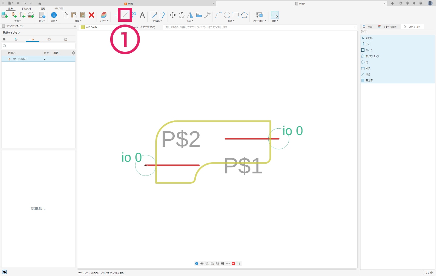 3-2-4 [配置]タブより「線分」コマンドを選択し、外形を描きます。これで、シンボルの作成は完了です。
