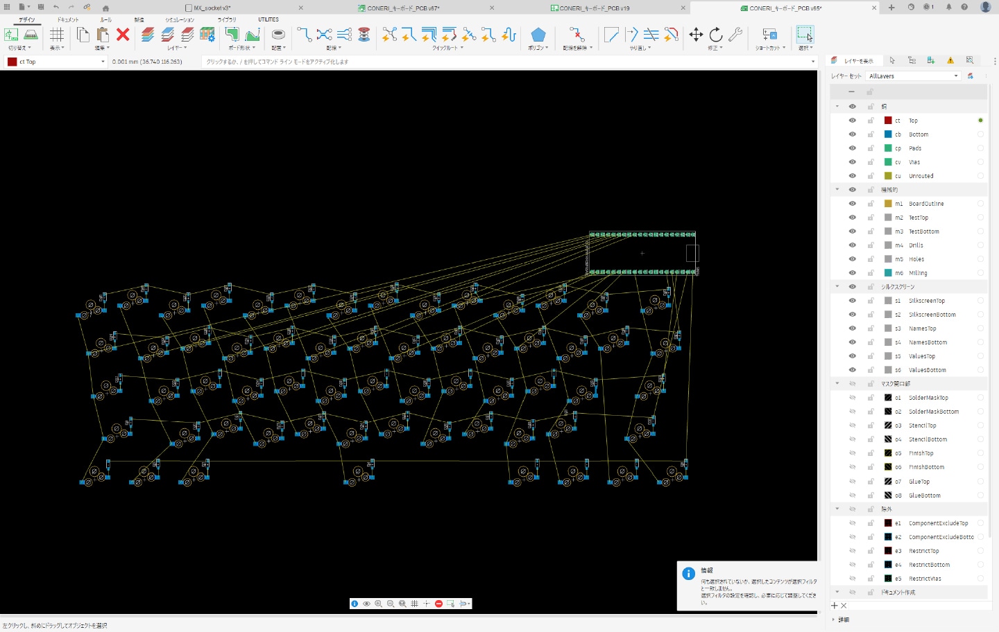 表示されたフットプリントを、キーボードの配置に合わせて配置します。